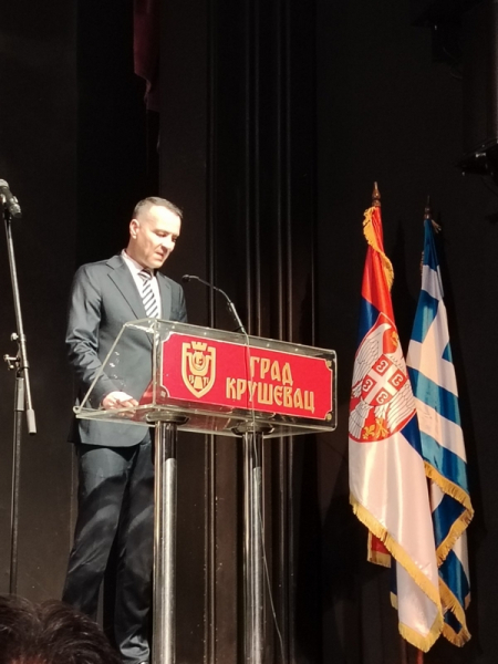 Учеснике и госте концерта топлим речима добродошлице поздравио је у име домаћина градоначелник Крушевца госп. Иван Манојловић, између осталог истичући да „Крф није само место сећања и историјске захвалности српског народа, већ симбол братства два народа које је издржало време и остало снажно и живо до данас. Зато је Ваше гостовање много више од концерта. Оно је потврда пријатељства које траје, које се негује и преноси кроз уметност и културу. Посебно нас радује што вечерас заједно обележавамо више од пола века наше посвећености музици, лепоти и повезивању људи. Својим доласком у Крушевац потврдили сте искреност и снагу веза између наших градова’.