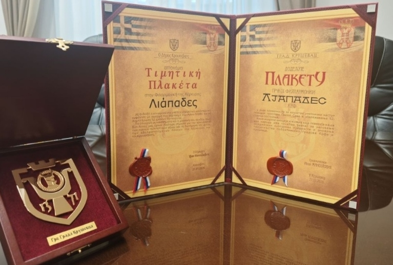 У знак захвалности, поштовања и пријатељства, град Крушевац је филхармонији ЉАПАДЕС поводом 52. године постојања и рада оркестра, али и искрених емоција које кроз музику повезују градове Крф и Крушевац и народе Грчке и Србије, доделио ПОВЕЉУ града Крушевца.