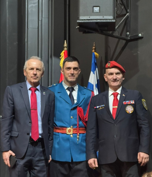 Председник филхармоније ЉАПАДЕС и велики пријатељ српског народа госп. НИКОС БОЗИКС као и председник локалне самоуправе Љападес са Крфа ЈАНИС АГАТОС, министру одбране госп. Гашићу и градоначелнику града Крушевца госп. Манојловићу уручили су иконе СВЕТОГ СПИРИДОНА (учесника Првог васељенског сабора у Никеји и заштитника острва и града Крфа). Обраћајући се присутнима и захваљујући се на добијеном признању, између осталог председник филхармоније госп. Бозикис је рекао: „Посебна ми је част што се налазим овде са Вама. Срећан празник Србији и целом православном свету. Наша икона коју смо поклонили министру одбране и градоначелнику је СВЕТИ СПИРИДОН, заштитник острва Крфа. Желими да чува и Вас, као што чува нас, и да подели здравље вама и вашим најмилијима. Хвала Вам од срца за позив да будемо овде и певамо заједно са вама. Обећавам да ћемо вам пружити незаборавно вече“.